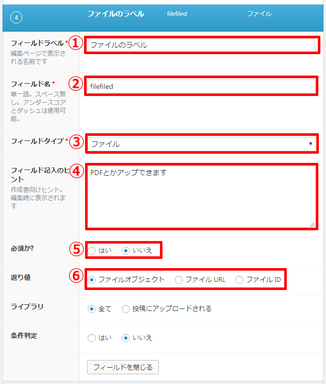 「advanced custom fields」プラグインを使ってファイル項目を追加し、画面に表示する方法をご紹介します。
