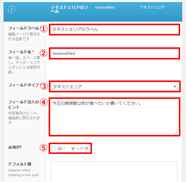 advanced custom fieldsを使って「テキストエリア」項目を追加
