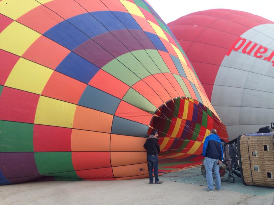 気球乗り場に行くとたくさんの気球が膨らんでいました。
