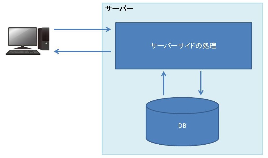 - 特定されたプログラムがアクセスに応じてDBへアクセスしデータを取得したり更新したりする。
