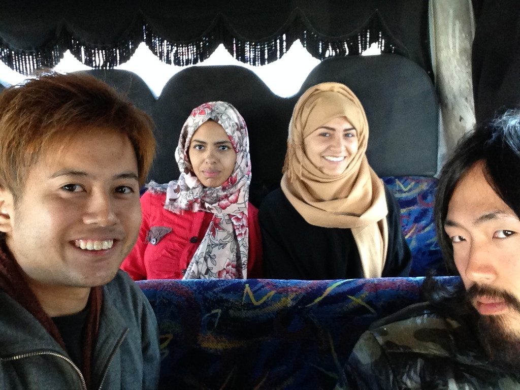 送迎バスでバス停まで送ってもらい、バス停からアカバ行きのバスに乗り換えます。