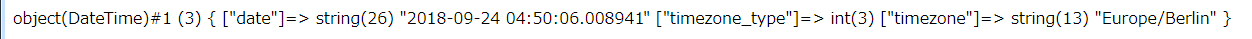 これを new を使いオブジェクトにしたものを var_dump() で出力してみます。