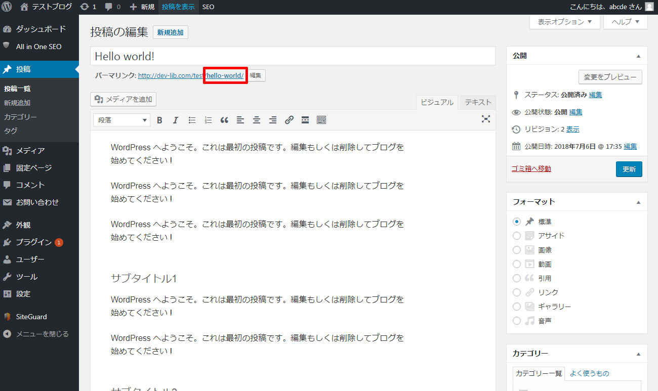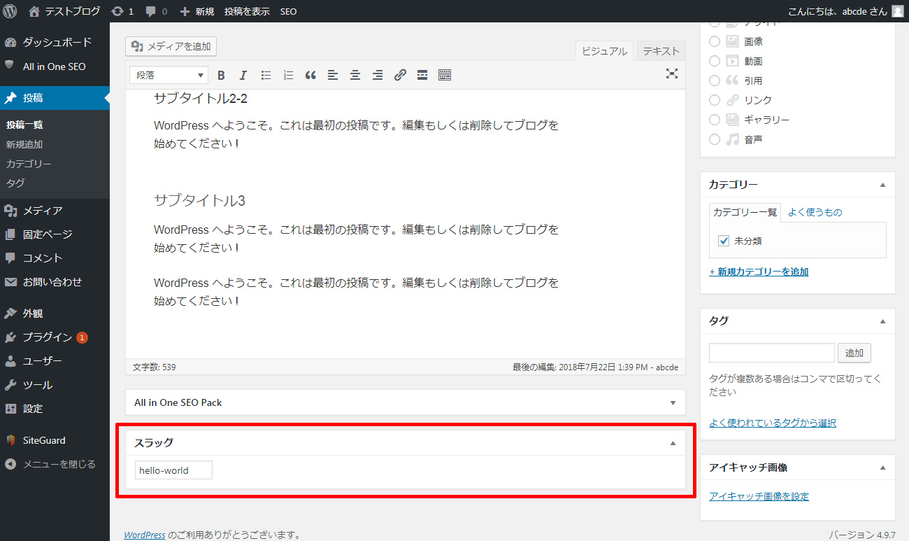 投稿記事や固定ページの名前のことをスラッグといいます。