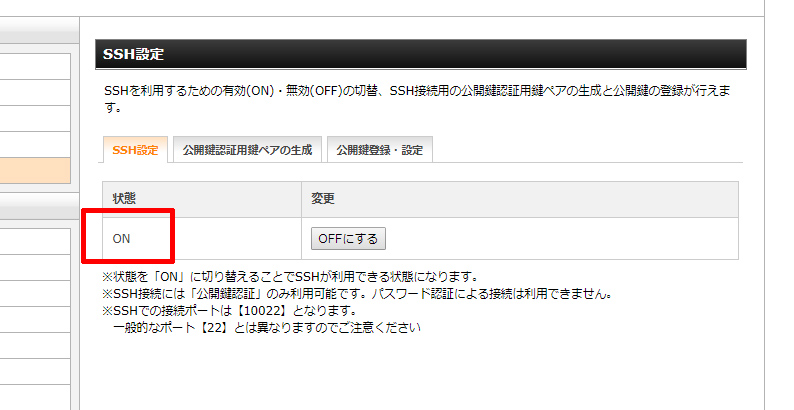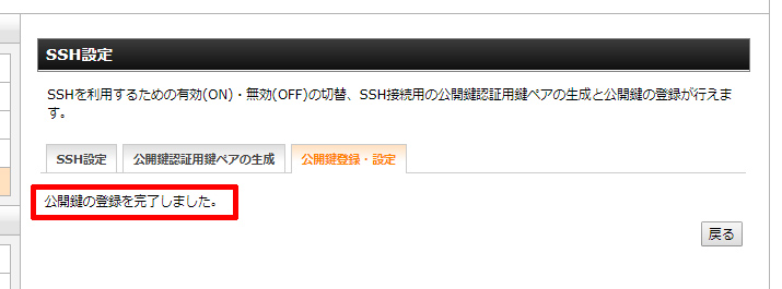 「公開鍵の登録を完了しました。」のメッセージが出れば登録完了です。