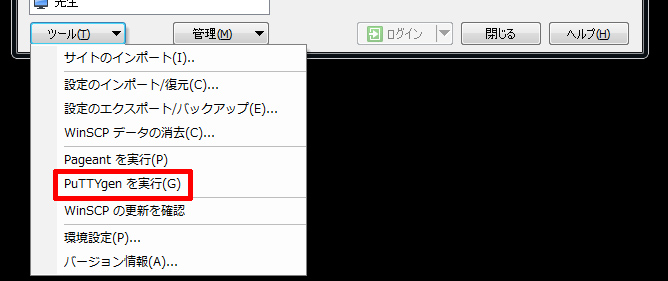 一番下の「ツール」をクリックし、「PuTTYgenを実行」をクリック