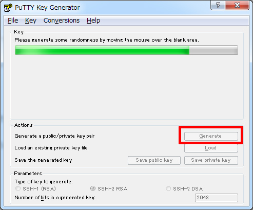 マウスを動かすとマウスの動きでランダムな鍵が作成出来るようですので、めちゃくちゃ動かしましょう。