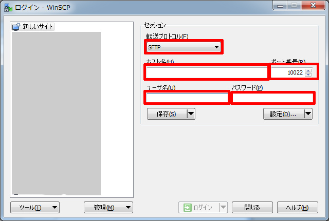 ポート番号はXサーバーのSFTPの場合は10022を入力してください。