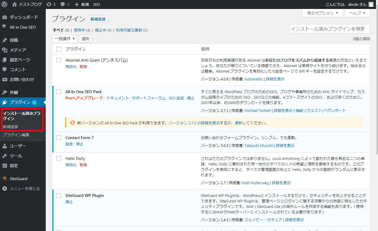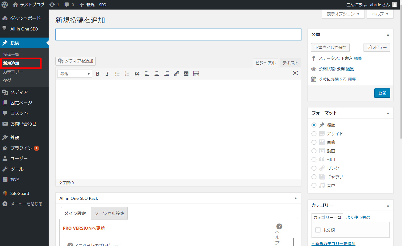 投稿の「新規追加」は、新規にブログ記事の投稿を行えます。
