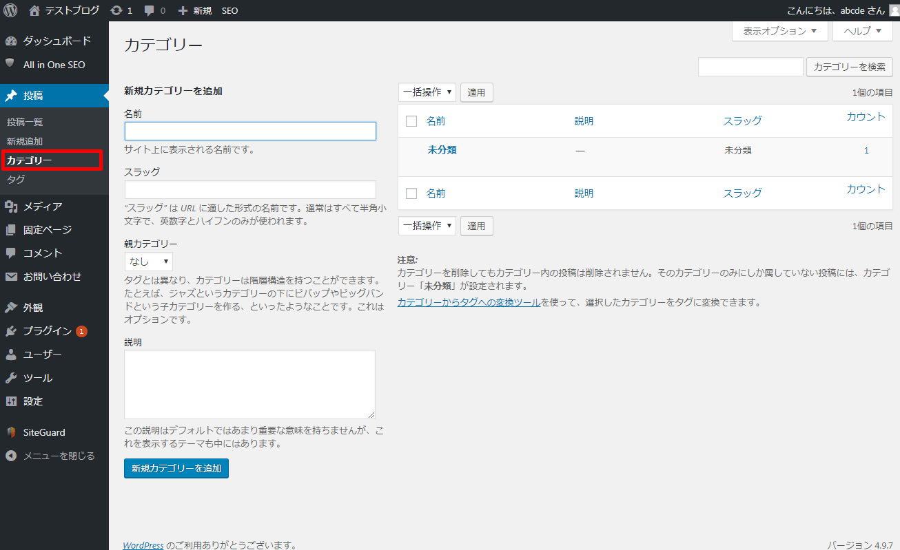 カテゴリーは投稿記事をカテゴリー分けできます。