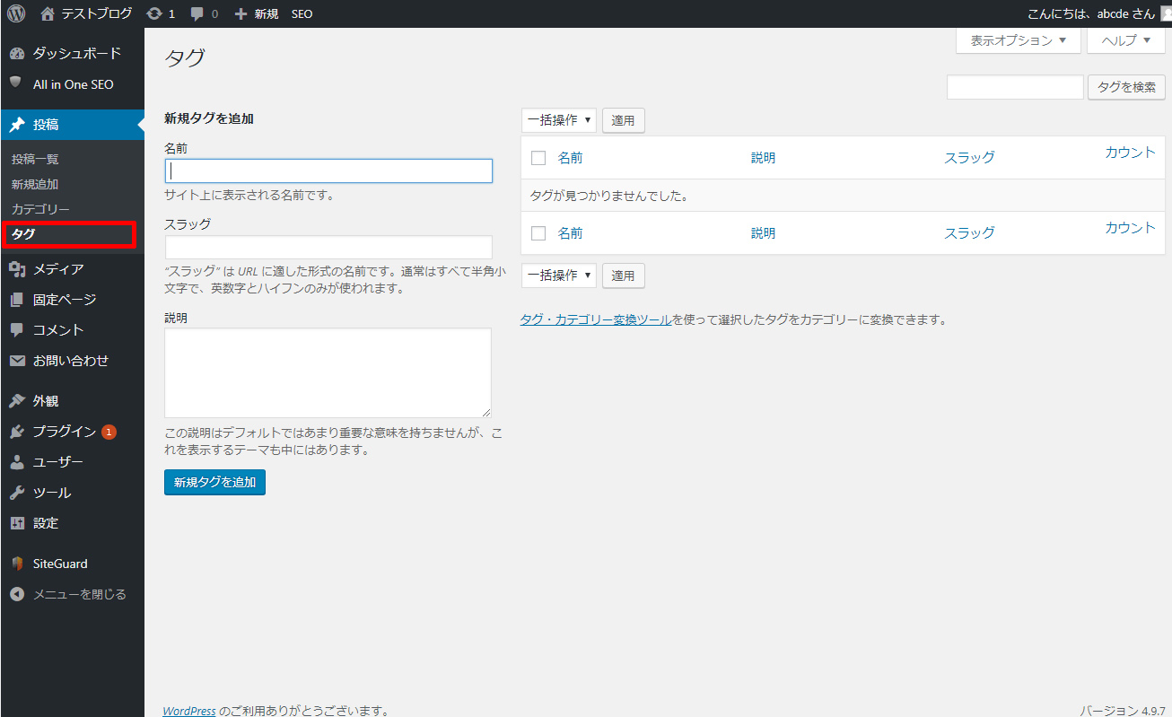 タグは、カテゴリーを更に詳細に分類したい場合に使います。