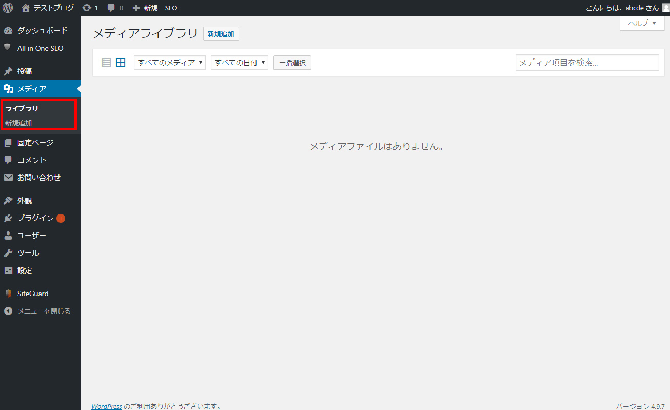 「メディア」は、ブログ記事に追加する画像やPDF、動画などを管理します。