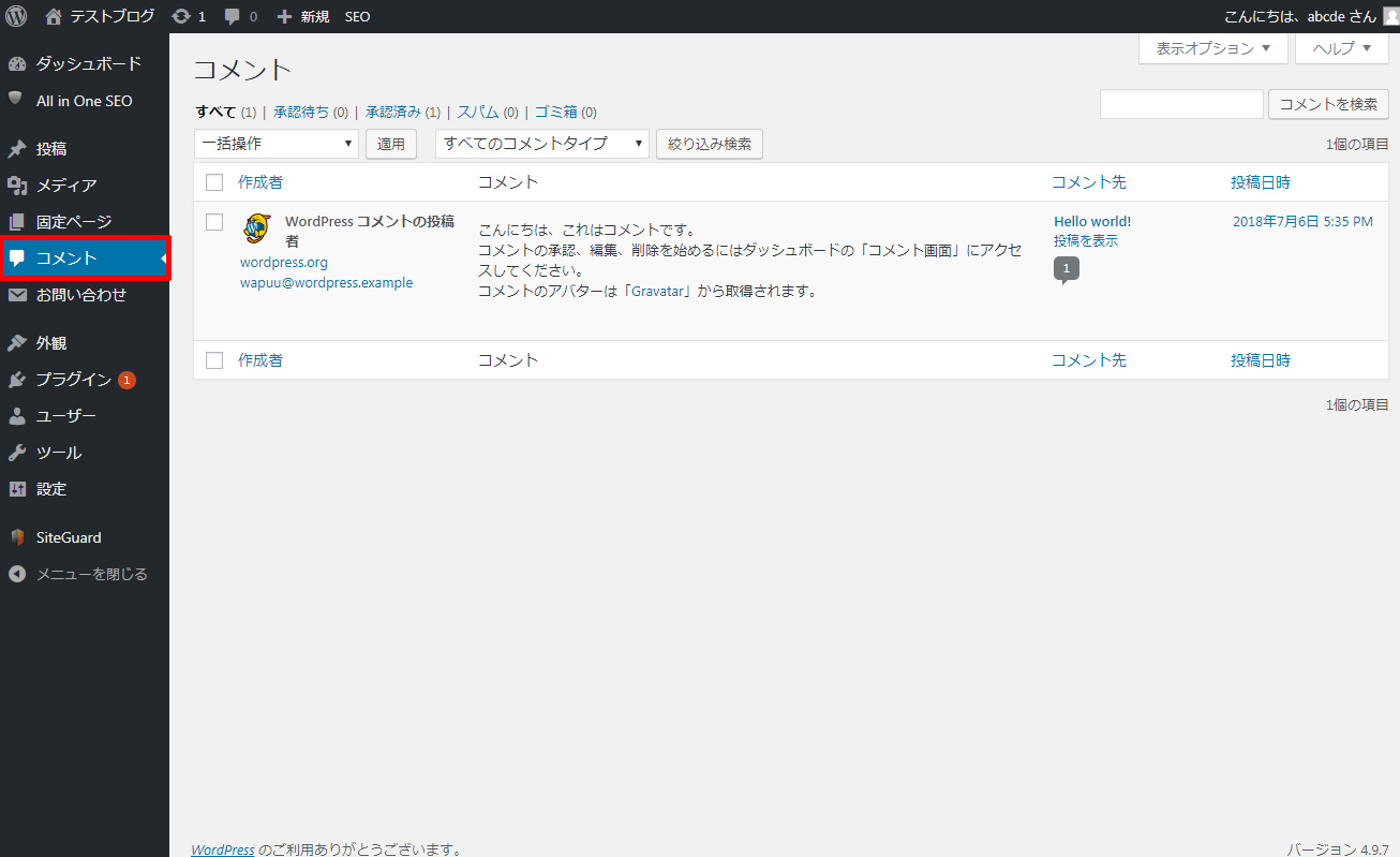 コメントはブログ記事に寄せられたコメントを管理するページです。