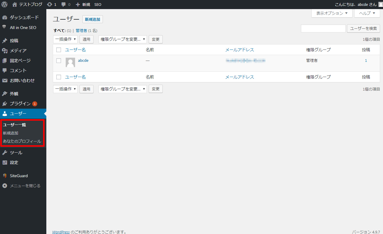 ユーザーには権限というものが割り振られ、例えば「管理者」は全てのことが出来ますが、「投稿者」はブログの投稿しか出来ないなどです。